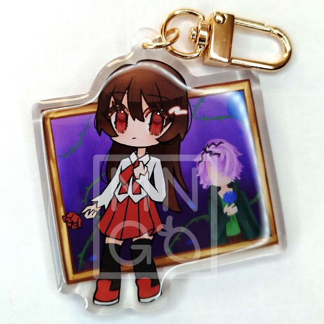 A delicate keychain inspired by the haunting world of IB. This miniature art piece captures the game's unforgettable charm and subtle eeriness. Perfect for fans who hold Guertena's exhibition close to their heart.